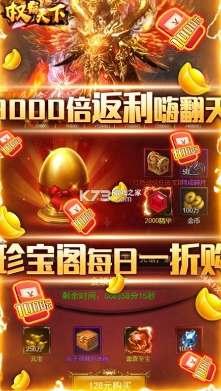 激爽体验1秒百级,开局激活三角色,超变态无敌资源1000倍返利,开局百亿身家,轻松碾压全场,全新珍宝阁一折购,元宝爆仓嗨翻天