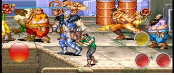 继快打旋风后又一个出色的格斗游戏,共有四个角色,可以三人同时进行游戏,刚开始玩的时候可能会觉得这个游戏比较难打,其实打熟了这个游戏还是比较简单的,最难的就是第七关的两个影子(单打)! 四个主角各有优点,但最历害的是老三了,他的飞腿是无人能敌的,用美女就比较难打,其他的白衣人和胖子差不多,胖子历害些