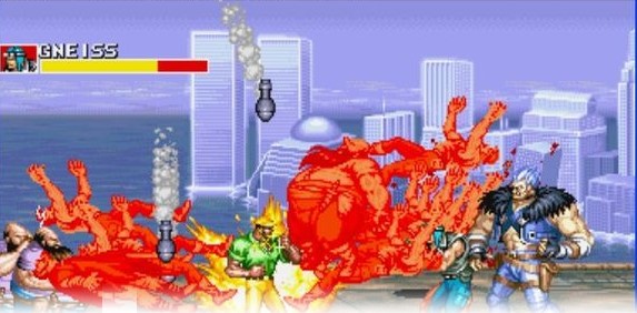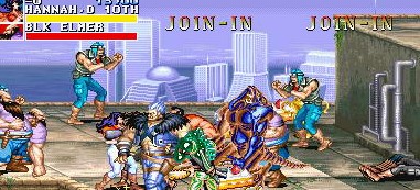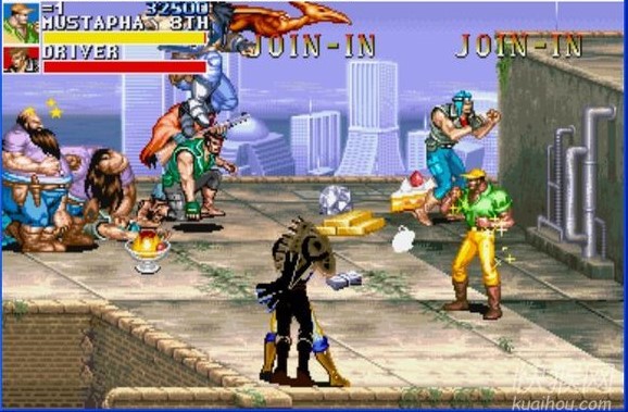 恐龙新世纪继快打旋风后又一个出色的格斗游戏,共有四个角色,可以三人同时进行游戏,刚开始玩的时候可能会觉得恐龙新世纪这个游戏比较难打,其实打熟了这个游戏还是比较简单的,最难的就是第七关的两个影子(单打)! 四个主角各有优点,但最历害的是老三了,他的飞腿是无人能敌的,用美女就比较难打,其他的白衣人和胖子差不多,胖子历害些
