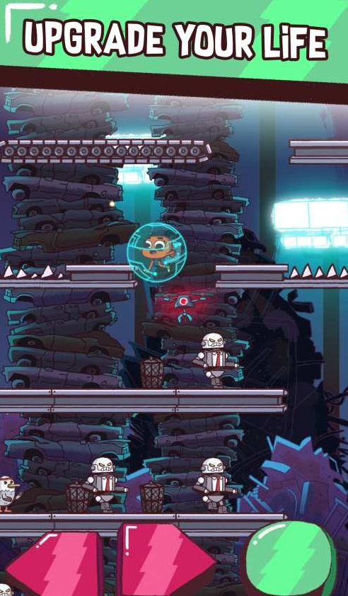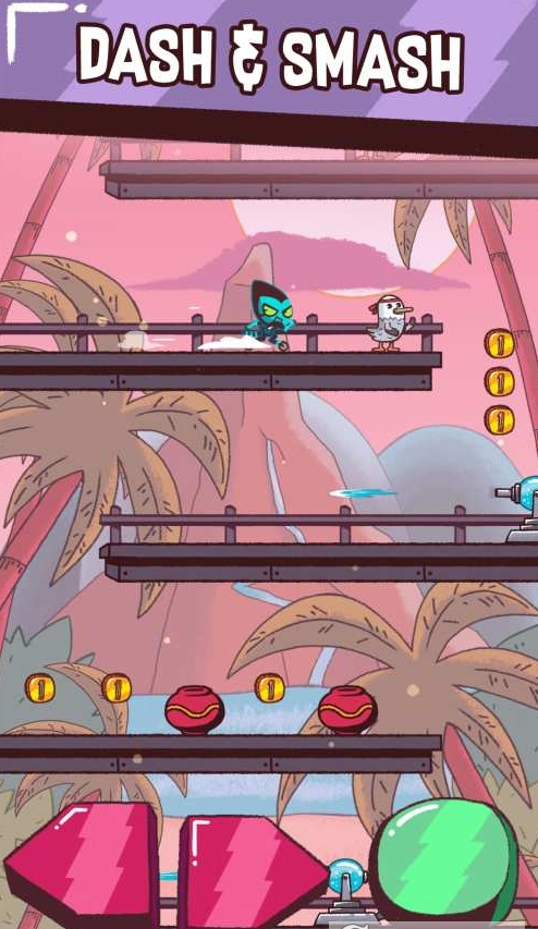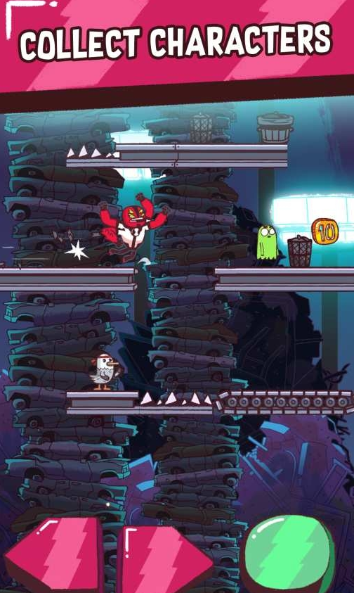 一款卡通风格的小游戏,通过红色的左右按钮来移动,绿色按钮来冲刺,冲刺不仅可以提高速度,还可以撞毁障碍物和消灭敌人!收集金币可以兑换强力道具,另外还有多种服装和多个角色等你来收集!