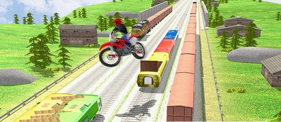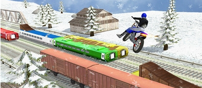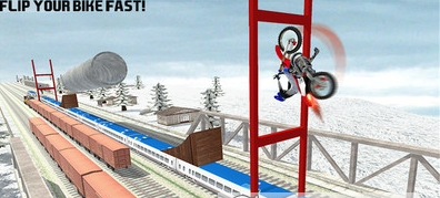 火车摩托特技是一款极限摩托车游戏,你可以通过摇杆试操作进行特技操作,摩托车与火车的组合,充满着奇幻元素。