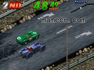 KANEKO(就是出品过《天蚕变》的那个公司)于1994年出品的赛车游戏。游戏的画面流畅,操作手感一流,很容易就上手。玩家可选择的车辆很多,这些车辆都来自不同年代,甚至还有30年代的老爷车。游戏的规则也比较简单,游戏的难点就是拐弯,但出现拐弯的前会有提示,如果拐不好的好,就容易打转而影响成绩,当然如果技术好的话完全可以玩一把“飘移”过过瘾,当然用不好的也是很郁闷的。一款不错的赛车游戏,推荐一玩。