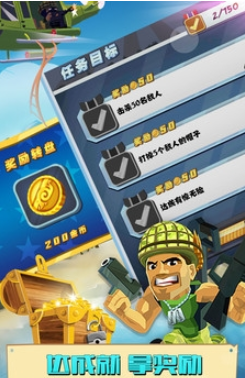 大兵突击是一款休闲射击类游戏,控制大兵抢占据点,使用强力的武器装备来压制对手,还有超多皮肤道具等你来抢哦~喜欢士兵射击手游的朋友们快来下载吧!