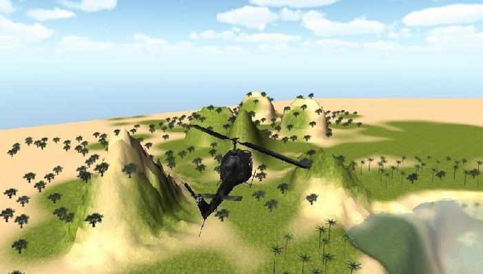 1、采用3D游戏引擎打造,真实的三维场景,体验驾驶直升机飞行的乐趣