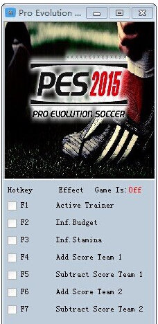 实况足球2015 v1.01四项修改器;支持实况足球2015v1.01版本的修改器,想要体验官方DLC,又想修改的玩家可以下载这个修改器试试。