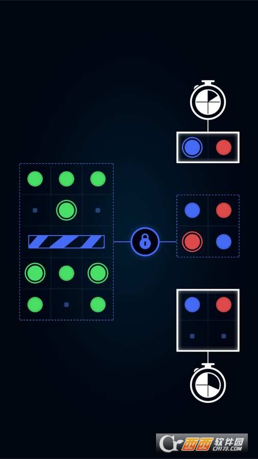 它的玩法很简单:移动你看到的绿点,直到它们形成4个点或9点组成的正方形。这些点可以变化多达3种颜色:红色,绿色和蓝色,但同一个正方形仅由具有相同颜色的点来形成。