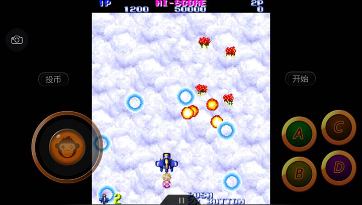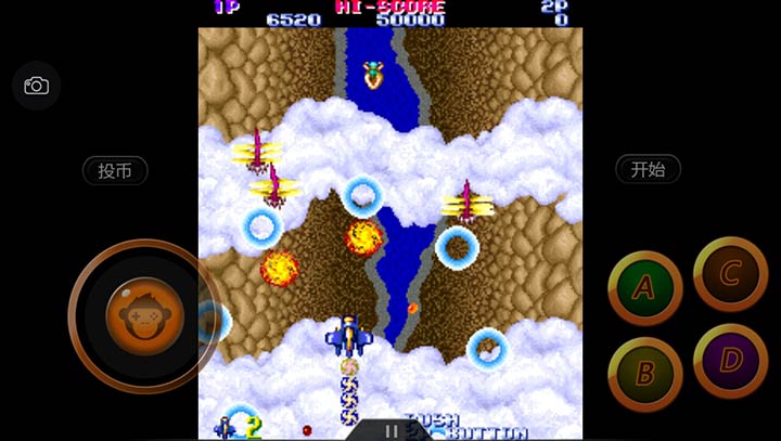 一款经典的街机射击游戏。游戏很有特色,敌人都些动植物,很有趣。我方飞机屁股后面还拖着球,不同的球威力不同。操作说明:A普通射击,B释