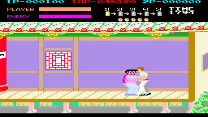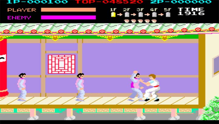 成龙踢馆 - Kung-Fu Master,简单有趣的动作游戏,1984年发行,推出后大受欢迎,因此也移植到许多版本,任天堂及电脑上都可以看到此款游戏的踪影。