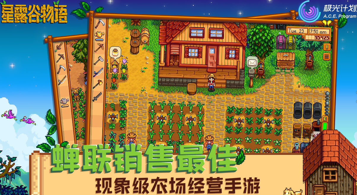 《星露谷物语》是由ConcernedApe开发,受数百万玩家追捧,屡获殊荣的现象级农场经营游戏。告别城市来到乡村,享受惬意的田园生活,完成各种各样的挑战任务:探索神秘而深邃的洞窟,与危险的怪物战斗,获取珍贵的宝藏;钓鱼或是捉螃蟹,在不知不觉中度过一个慵懒的下午;用自己种植的作物制作美味的菜肴。
