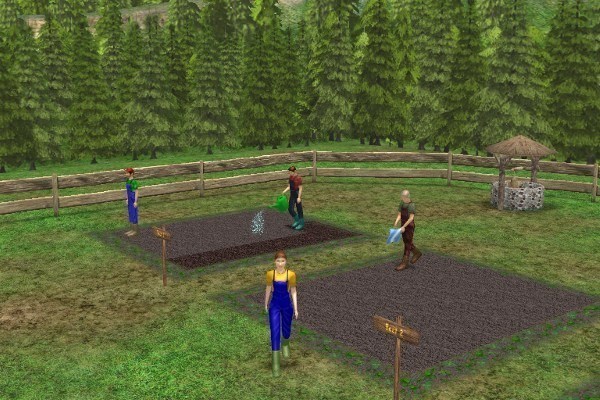 【播种】然后你就可以播种,操作跟挖地是一样的(再提示一次,先按一下种子袋,然后让人走到已挖的田地中央,再把鼠标按一下人,就可以播种了)。