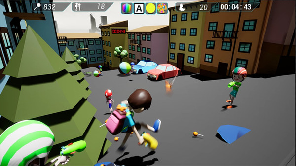 有两种类型的孩子:一种是从一个门到另一个门随机奔跑的孩子,另一种是拿着水球手枪的孩子,他们决心让玩家慢下来。但玩家有办法改变恶作剧的行为。