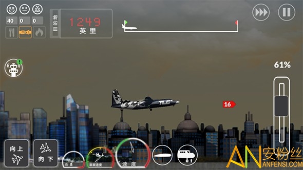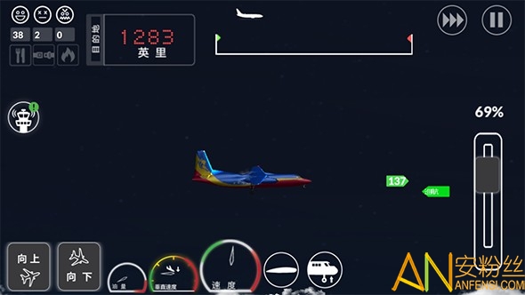 3、滑动右边加速杆控制飞机加速减速;