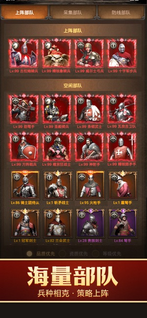 海岛帝国中世纪是一款以欧洲中世纪为背景的战争策略手游,复古风格界面,你能变成盟主,创建封地,征募并训炼强劲的部队,随时随地与对手进行作战,能够与别的国家协作,享有并肩作战的快乐,持续攻城略地,让自身的国家一步步发展趋势起来,体会极其的满足感。