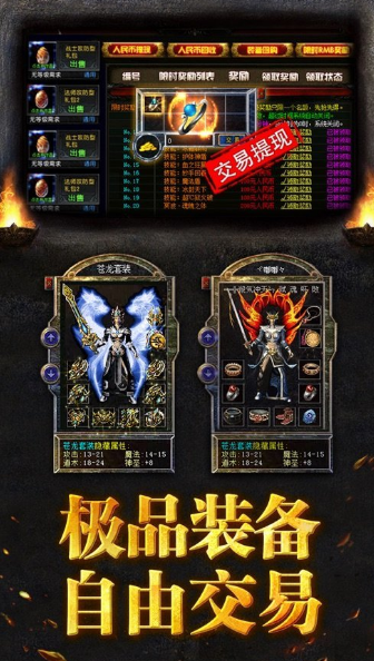 a、大战龙城雄霸九州,强力武器杀怪会出现大量暴击伤害,强力装备可以进行交易;
