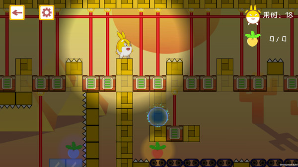 玩家能通过游戏内置的简易编辑器编辑简易关卡,游戏物品分为地刺、隐形砖头、下沉砖头、萝卜陷阱、弹跳机关、可碰撞箱子、履带、传送门、漂浮平台、镭射机关、定向电锯十一种机关,只要你喜欢和耐心,十一种机关能为你打造一幅有趣的秘境地图。