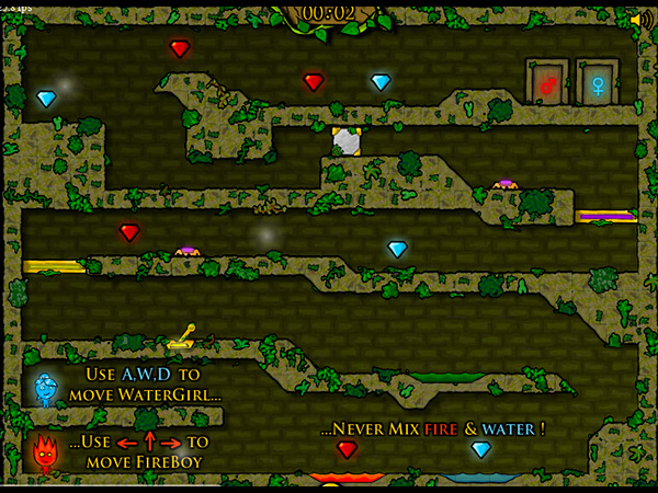 《森林冰火人》是一款非常考验操作敏捷与配合精神的小游戏。玩家在游戏中要帮助森林中的水孩和火孩顺利过关,并收集所有的宝石,需要两个孩子很好的配合,不论是一个人还是两个人玩都可以。