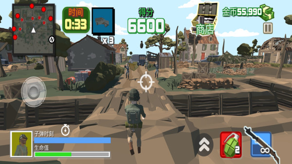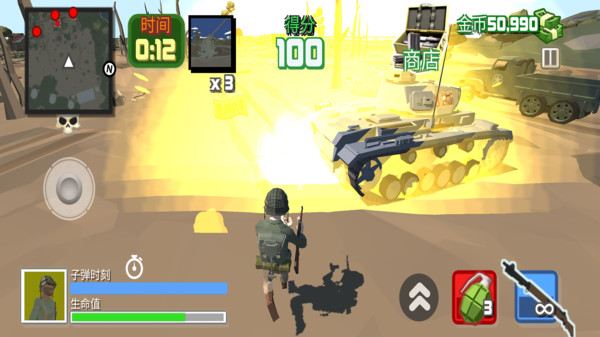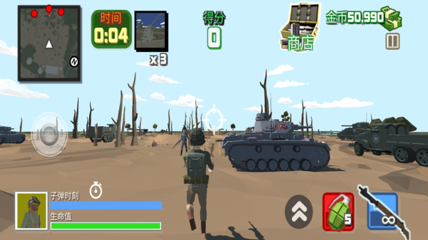 a.有趣的游戏玩法,玩家操控的角色可以随机改变策略,可以用手中的枪攻打近点的敌人,也可以即使坦克进行一场游击战,击败他们吧。