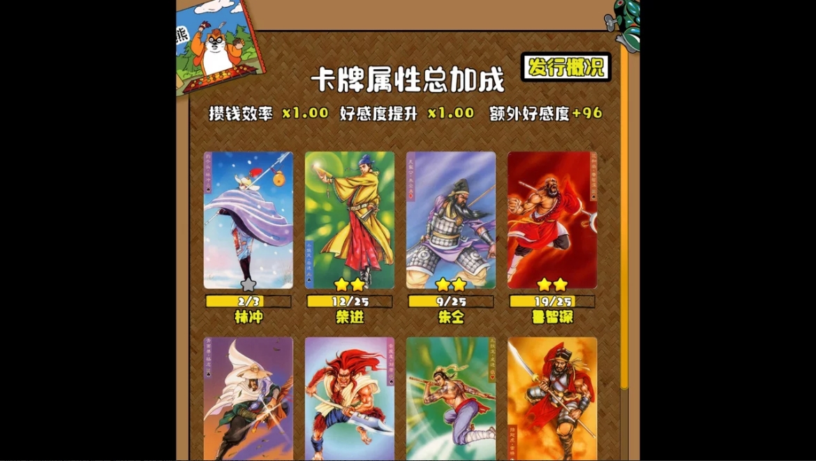 《集集集水浒》是一款模拟卡牌收集的休闲游戏,玩家可以从小卖部购买方便面,开出各色的水浒卡牌,从而达成羁绊,体验水浒英雄们的豪杰情义