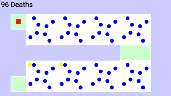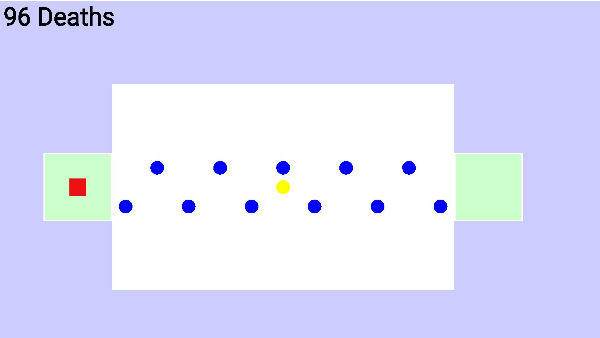 世界上最难玩的游戏 你敢挑战吗!游戏玩法很简单 :你需要控制红圈圈,避免了蓝色圆圈,并收集黄色圆圈。从绿色的一段移动到另外一个绿色区域蓝色圆圈在通同时在做有规则的运作,咱们就是要发现这个规则闯过去就行了,要是碰到了蓝色圈圈就挂啦,因为挂掉的几率很高,所有游戏一挂1 秒不到就可以继续开始