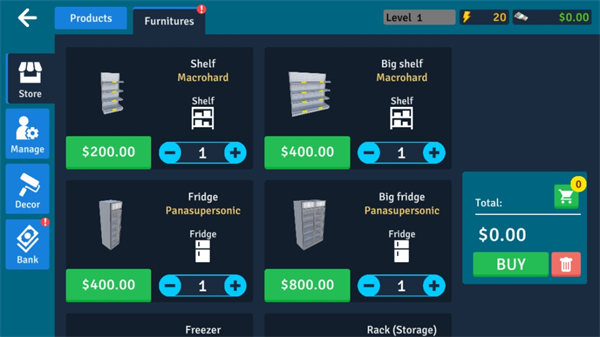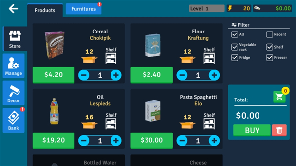 2、玩家需要不断采购和解锁新的产品,让货架一直处在满货的状态,才能在超市中看到源源不断的人进来。通过不断引入新品,玩家可以吸引更多顾客,提升超市的知名度和营业额,同时也要注意库存的合理调配,避免积压和缺货。