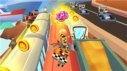 2. 在地铁车厢里,玩家能够收集硬币与钻石,这些可用来购买新角色以及强化道具。