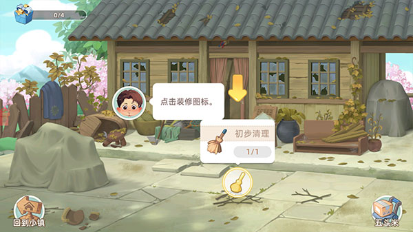 3、蘑菇屋需要进行打扫,点击气泡内的装修图标,进行打扫清理。