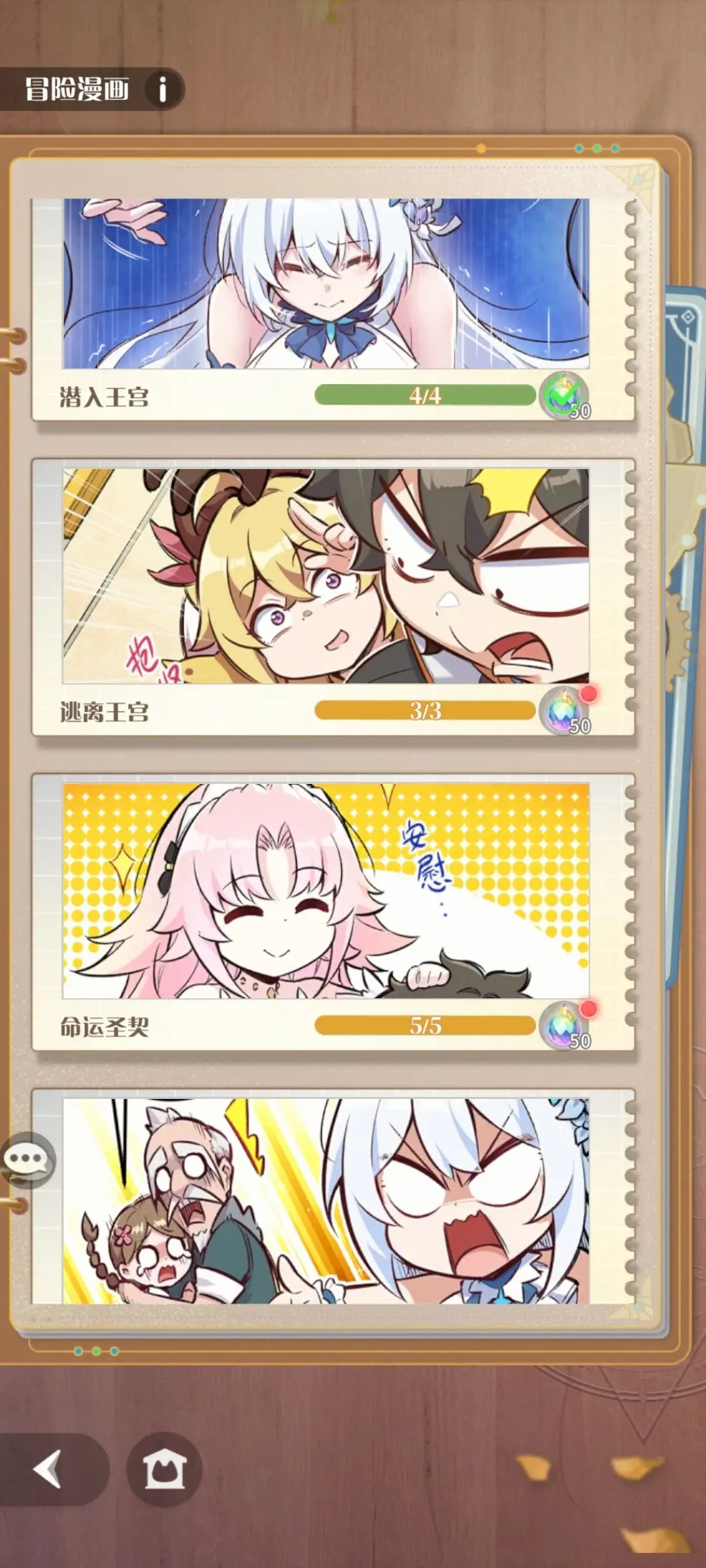 但最让我觉得有趣的,当属这游戏的剧情体验,游戏里称之为旅途。在关卡界面,下方小队成员的待机动作与剧情关卡的章节关联紧密,每一章都对应特定动作,让人很有代入感。此外,关于剧情的展示方式,如今常见的二次元游戏,大多采用单纯对话形式,难免有些枯燥。虽说并非没有高成本的CG动画,只是数量相对较少。