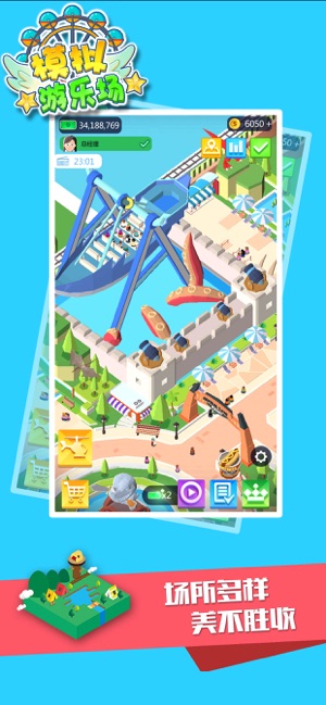 模拟游乐场经营游戏是一款多种娱乐设施设定。自由自玩转的模拟软件。通过日常的累积财富。解锁商店更多的建筑物,准备引进不同的娱乐器材。让你的游乐园看起来变得更加美妙。还可以投个生意。修缮自己的店铺。扩张你的地方吗?规划你的非凡人生。从草根一步步走向。富豪之旅。需要你懂得管理,更需要懂得更好的经营哦。