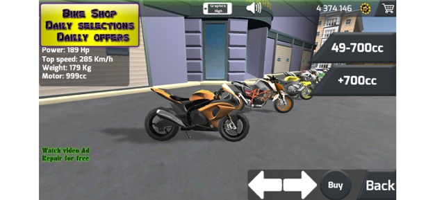 2、玩家在游戏中可以使用不同的自行车进行比赛不同的自行车家将给玩家不同的游戏乐趣和帮助。