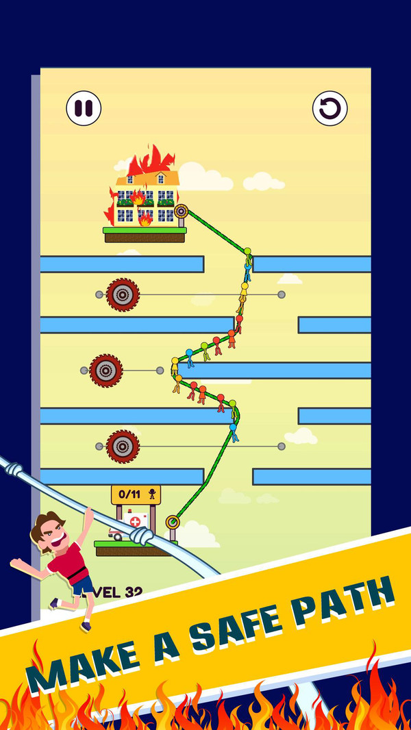 消防救援是一款冒险闯关类手机游戏,游戏中使用了卡通色彩进行渲染让整个游戏画面变得更加的趣味真实。玩家在游戏中将作为一名的消防队员不断地进行拯救人物,大量的关卡和不同的陷阱障碍将为你带来更多的游戏挑战增加游戏难度。