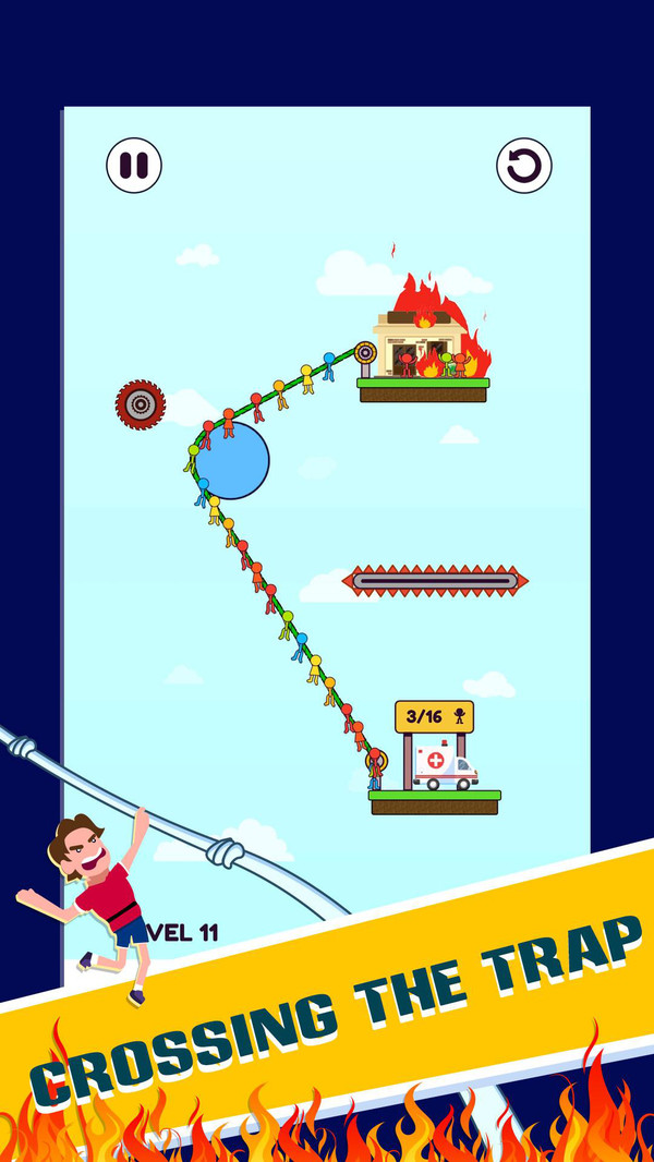 1、玩家需要利用绳索拯救大量的人,并且在拯救的时候注意索道的安全性保证人不会损伤。