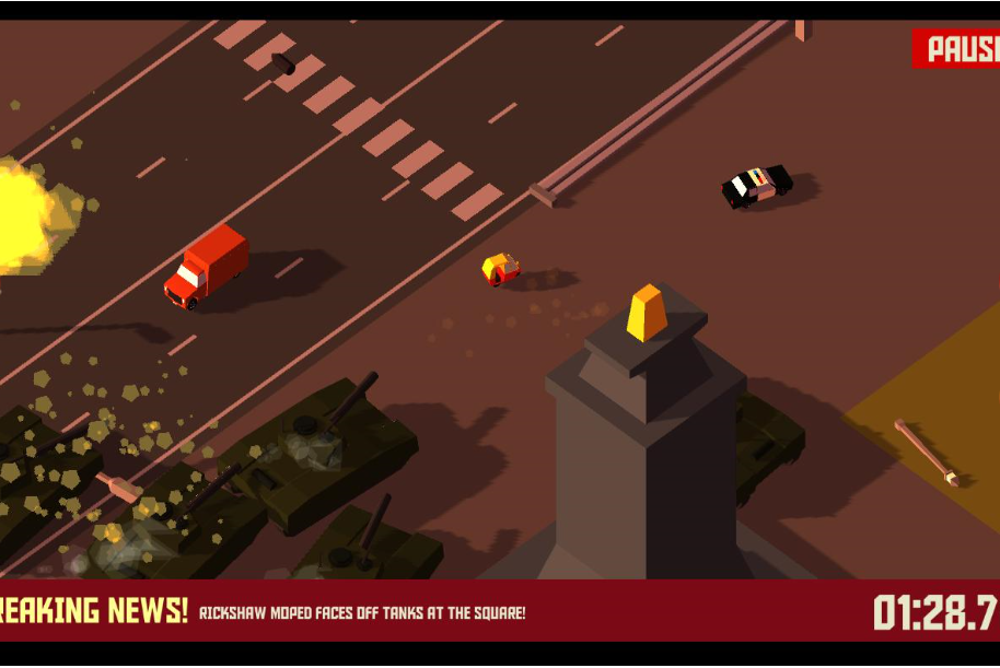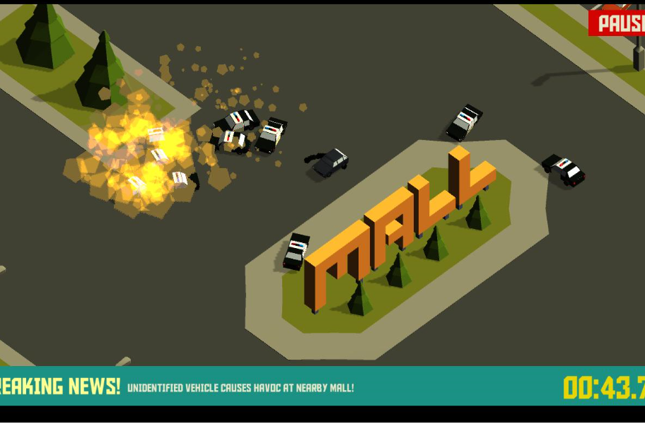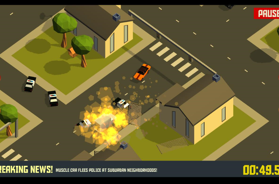 在游戏中,为玩家准备了各种有着特色的小车。比如你的这辆,已经处于失控状态。玩家需要在游戏中躲避所有障碍,当然你可以去碰碰其他小车,但我还是建议你不要这么做。毕竟紧跟在你身后的还有辆警车。你最好能够来一个完美的漂移,让警车望尘莫及。并让它们成功自爆。在游戏中,地图随机生成。玩家能否获得游戏的胜利,全靠玩家掌握的熟练程度。