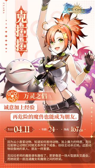 在昆图斯学院的上课时段,如果看到一群学生与动物在户外玩耍,别以为他们是不认真听讲的逃课学生。那其实是学院最热门课程之一——魔兽课的授课现场,而在其中领着大家玩闹的红发“学生”,正是这门课的老师克拉拉。