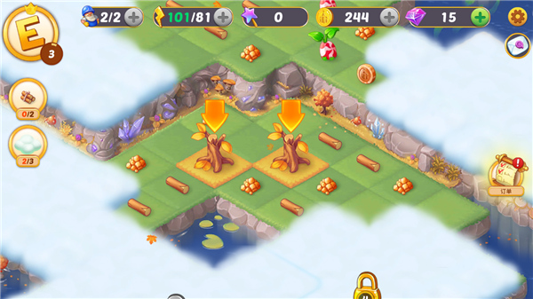 2、将木头进行合并,从而获得小木屋,接着把小木屋再次合并,最终建成木头豪宅。