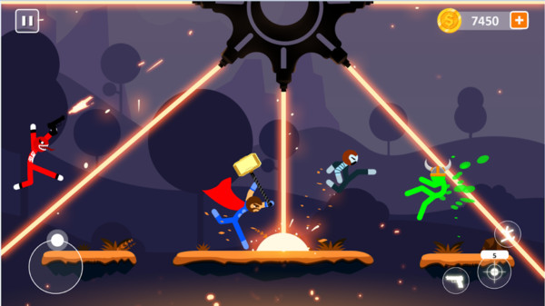 《》是一款动作格斗类手机游戏,在当中你将控制一个火柴人在一个非常梦幻的场景中和敌方进行着对战。