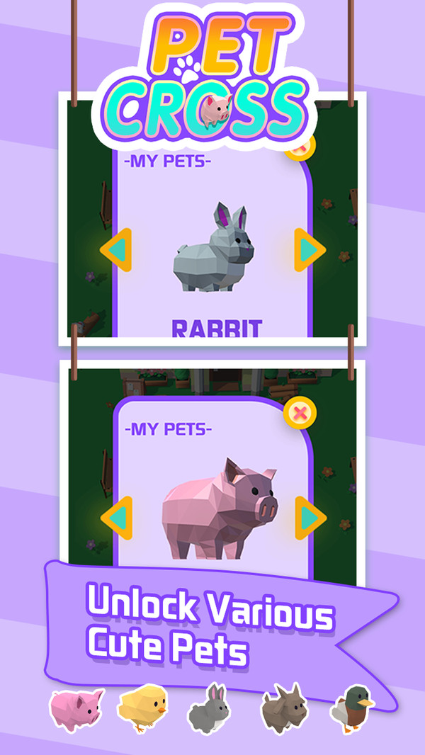 萌宠冲冲冲小游戏是一款脑洞新奇的休闲减压类手机游戏,你在这里将化身为一名农场主,为了让萌宠们能够更快更好的成长,你必须定期带它们去往清新又开阔的大草地上,但在去往目的地的路途中需要穿行繁华的都市街道,来来往往的车辆便是对萌宠们的极大危机,而这个时候就是考验你真正技术的时候啦!
