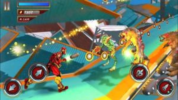 2、用手掌发出激光炮,这只是针对于单个敌人的,如果敌人的数量很多就要大招。