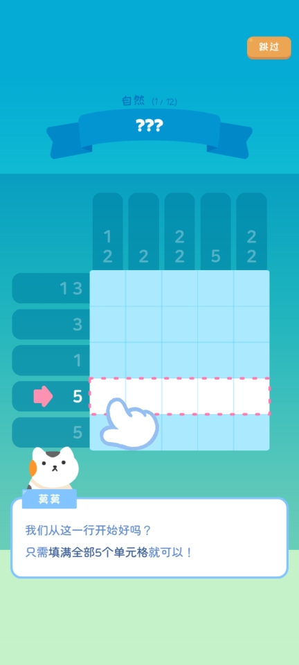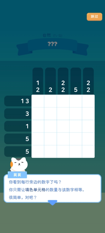 3、你留意到每行旁边的数字了吗?你只要保证填色单元格的数量和这个数字一致就行。