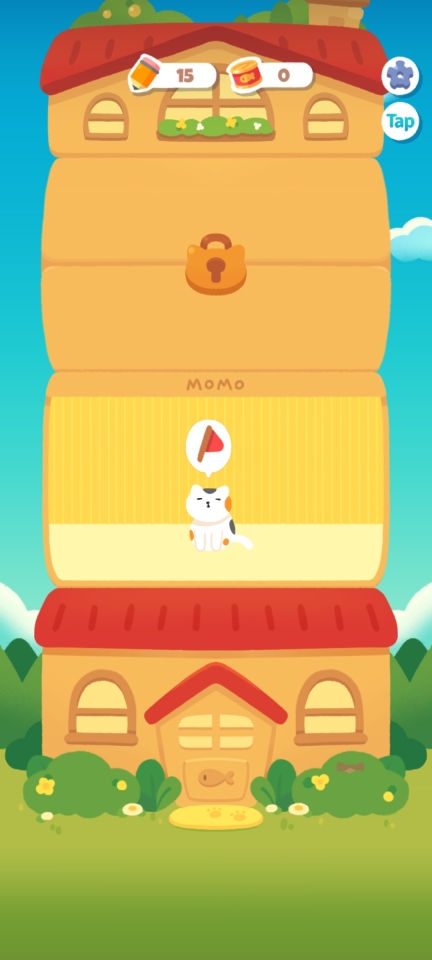 2. 只需点击猫咪momo头顶的小红旗,就能开启游戏。