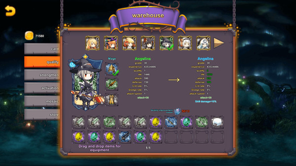 装备:每张卡牌都可以装备不同的武器及防具,这样可以大量的提高属性,而武器及防具同样可以进行强化已经品质提升。
