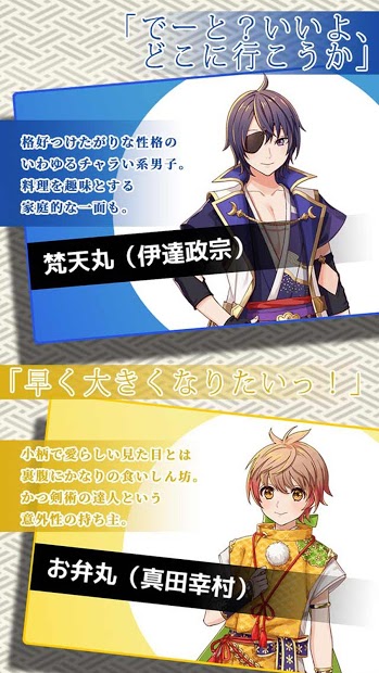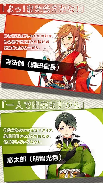 既然是一款恋爱模拟类手游,那么玩家肯定是跟随着主线剧情来进行探索。随着剧情的慢慢发展,你会结识一个又一个知名的人物,你会和他们从邂逅再到产生感情羁绊,在这个过程中会发生很多事件需要你做出选择,不同的选择会推进不同的剧情发展!玩家可以尽情体验和不同人物之间的恋爱感觉,绝对是充满幻想的游戏体验!最关键的是,在这里,你居然还可以给少年时代的战国名人们换装!