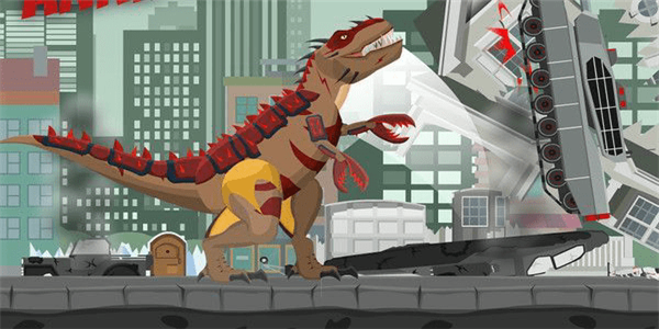 1.当玩家操控恐龙在城市中大肆破坏时,人类会出动各种武器来阻止破坏,不过无须太过担心,这些武器的伤害对于庞大恐龙而言不值一提,你只要在破坏的同时适当躲避即可,当然了,还需要不断收集积分。