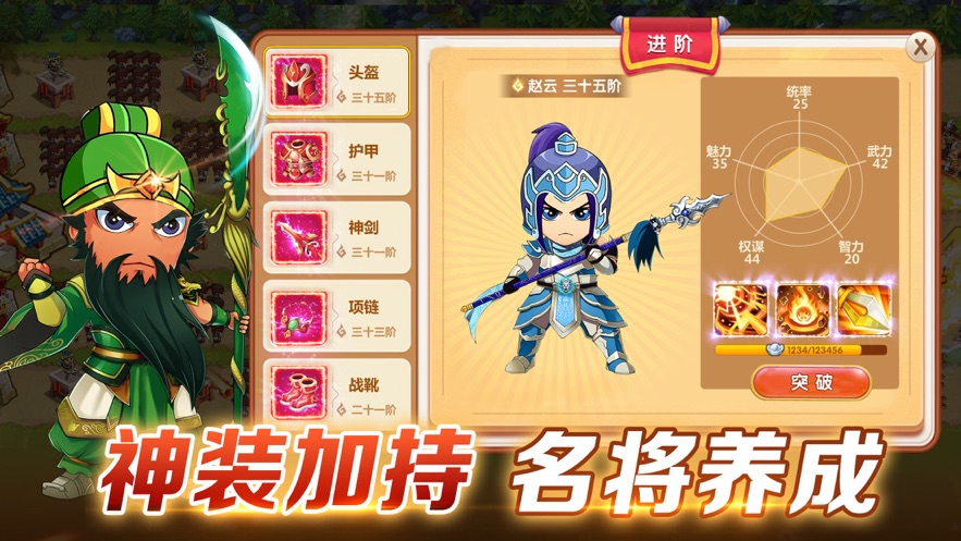 3、获取更多资源提升战将的星级,提高基础属性,还有使用装备。