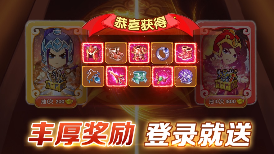 3、丰富的资源道具,解锁更加强大的无尽,组建最强大的三国军团。