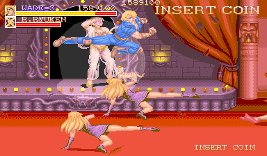 《暴力风暴》是一款街机动作游戏。人物招式则看出向街霸致敬的意思,旋风腿、倒立旋风腿、旋风掌等。动作感觉上很接近快打旋风的风格。
