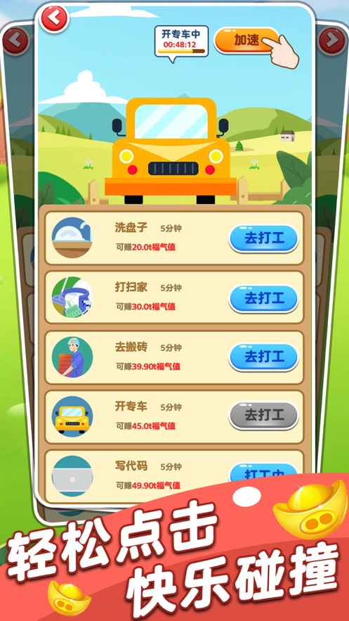 2、工作可以获得大量的经验这些经验可以帮助玩家快速的成长,解锁一些全新的小猪种类并且利用元宝购买。