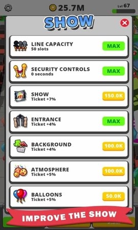 搭建舞台,卖票,赚钱!运行自己的食品卡车,创建多个主题阶段!