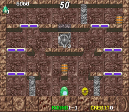 起初是可以选择路线的,一个MM出现并告诉你最后的目的是打败邪恶的势力,然后你就可以操纵一个小东西进行游戏了,游戏是一个密室一个密室的过,每个密室若干怪物和宝箱,游戏中通过扔定时炸弹的方式来炸死那些恐龙等怪物,然后就可以拿到一个光盘,这时会进入下一个放光盘的一个密市,把光盘对准石刻板放上去,就可以走出这个关卡了,就是这样的简单明了,不需要废话。但要注意炸弹不要炸到自己,而且有些辅助道具的应用使得这款游戏确实非常上手。
