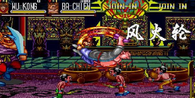 七、西游释厄传中的小兵是挺耐打的,但是并不厉害,西游释厄伝SUPER中则相反小兵不耐打(有武器时普通攻击2下解决,无武器时3下解决),但却是以凶悍著称,在双打敌将时,小兵会一次出三个,而且会源源不断的出(只要画面上只剩下一个小兵时),以制造混乱的战斗场面。