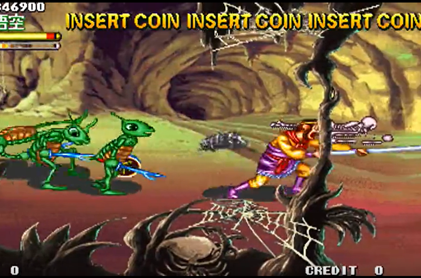 盘丝洞:第一层破2茧后待小怪尸体消失不见后爆气下。第二层破4茧原地跳3下便可下至第三层。第三层一共会从上面落下的茧中出现6只大蜘蛛,总连击30HIT以上打死6只大蜘蛛后,上方石像裂开会出现女郎蜘蛛,消灭之即可完成任务。(注:打完女郎蜘蛛后,直走进洞,才会遇到本关关底敌将蜘蛛精)